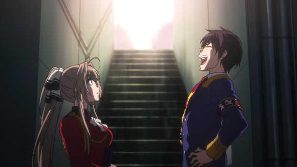 Slice-of-Life-Fantasy trifft auf Themenpark-Simulation. Obwohl Amagi Brilliant Park nicht auf einem solchen Videospiel, sondern einer Light-Novel-Reihe von Full-Metal-Panic!-Schöpfer Shoji Gato basiert, sind Parallelen zum Game-Genre immer wieder zu erkennen. Das ist positiv gemeint, da sich hier zeigt, wie gut Seiyas Einsatz als Themenpark-Leiter in die Handlung einfügt. Dabei beginnt die Geschichte nicht direkt mit seiner Arbeit. Viel Zeit lässt sich Amagi Brilliant Park Volume 1 aber nicht. Episode eins steigt direkt mit Isuzus mit Waffengewalt unterstrichener Bitte um ein Date ein. Und das ist wörtlich gemeint, da die etwas eigenwillige Schülerin Seiya tatsächlich mit einem Gewehr, das sie auch später schnell zur Hand hat, bedroht. Doch trotz des zügigen Anfangs, ist das Erzähltempo nicht zu schnell. Viel mehr wird lediglich der Schulalltag von Seiya und Isuzu ausgeklammert und der Fokus stark auf die Zeit der beiden im Park gelegt.