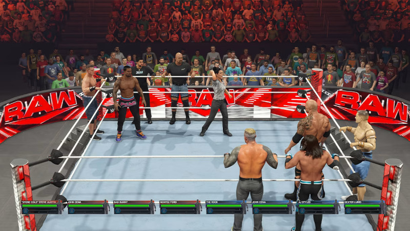 Wie in den Vorgängern, erleben wir im Showcase-Modus die Geschichte eines ausgewählten WWE Superstars nach. Dieses Mal dreht sich alles um Hollywoodstar und moderne WWE-Legende John Cena. Wir erleben einige der wichtigsten Matches in der Karriere Cenas nach. Allerdings spielen wir dabei nicht ihn selbst, sondern schlüpfen in die Rollen seiner Gegner. So dürfen wir etwa als Rob Van Dam bei ECW One Night Stand oder als Kurt Angle bei der SmackDown!-Ausgabe vom 27. Juni 2002 gegen John Cena antreten. Wrestling-Fans wissen vielleicht wie diese Matches ausgingen und genau diesem Ablauf folgen wir auch. In jedem Match erhalten wir Aufgaben, die wir erfüllen sollen. Regelmäßig wird das Kampfgeschehen von Videoszenen der echten Matches unterbrochen, so dass wir die wahre Geschichte rund um die damaligen Ereignisse nacherleben können. Das ist recht kurzweilig, bietet uns weitere Wrestler, Arenen und anderes zum Freischalten, kann aber aufgrund des vorgegebenen Ablaufs auch etwas zäh sein. Trotzdem ist der Showcase-Modus durchaus unterhaltsam und gerade wer Lust hat, ein wenig Wrestling-Geschichte rund um Cena nachzuerleben, ist hier richtig.