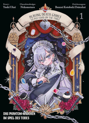 Playing Death Games To Put Food On The Table: Das Phantom-Mädchen im Spiel des Todes Band 1 ist die Manga-Adaption der auf deutsch bisher nicht erhältlichen Light-Novel-Reihe Shibō Yūgi de Meshi o Kuu von Yuushi Ukai und necometal. Die Geschichte beginnt direkt mit der Erklärung, dass Protagonistin Yuuki mit tödlichen Death Games ihren Lebensunterhalt verdient. Wie viel Erfahrung sie bereits hat, wird im Verlauf der Vorstellung der sechs Charaktere, die gemeinsam ein mit Fallen gespicktes Herrenhaus verlassen müssen, eingebaut. Hier erhalten die Figuren ausreichend Profil, das im Verlauf der Handlung weiter ausgearbeitet wird. Im Mittelpunkt steht aber eindeutig Yuuki, die bereits bei fast dreißig Death Games teilgenommen hat. Entsprechend wird ihre Erfahrung mit den tödlichen Spielen präsent genutzt, während die anderen Spielerinnen sich auf sie verlassen.