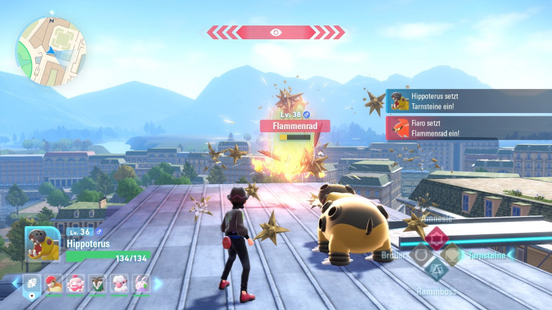 Eine entscheidende Frage ist aber noch offen: Wie ist die Technik von Pokémon-Legenden: Z-A. Schließlich haben die letzten Pokémon-Spiele auf der Nintendo Switch eher mit schwacher Performance und grafischen Macken für negative Aufmerksamkeit gesorgt. Hier kann Entwarnung gegeben werden. Besonders auf der Nintendo Switch 2 läuft Pokémon-Legenden: Z-A flüssig und zeigt keine Probleme bei der Performance. Ähnliches gilt für die Nintendo-Switch-Version, die jedoch mit weniger Bildern pro Sekunde auskommen muss. Außerdem sieht das Rollenspiel auf der Switch 2 dank höherer Auflösung und grafischer Aufwertungen besser aus als auf Nintendos erster Hybrid-Konsole. Ein optisch modernes Spiel sollten Fans jedoch auf keiner der Konsolen erwarten. Dank des üblich comic-haften und bunten Grafikstils, fällt das aber kaum negativ auf. Lediglich die etwas zu leeren Straßen Illuminas City und das nicht unbedingt lebhafte Verhalten der Bewohner, könnte besser sein. Am Spielspaß ändert das aber nichts. Zumal Pokémon-Legenden: Z-A eine schöne Atmosphäre hat, die vom gewohnt guten und passenden Soundtrack unterstützt wird. Auf eine Vertonung wurde leider erneut verzichtet. Dafür wissen die deutschen Texte zu überzeugen.