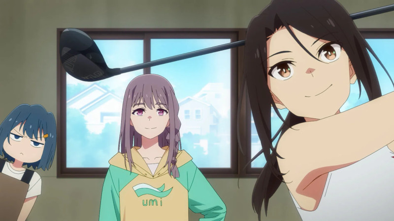 Sorairo Utility lässt den Charakteren viel Zeit zur Entfaltung. So werden nicht nur Minami und ihr Weg zum Golf ausführlicher vorgestellt, sondern im Laufe der zwölf Episoden erhalten auch Haruka und Ayaka durch Einblicke in ihre Leben mehr Profil. Das ist essentiell, um das Hauptfiguren-Trio auszubauen, schließlich tragen sie die angenehm erzählte, leichtgängige, fröhliche und witzige Geschichte. Dabei erinnert Sorairo Utility immer wieder an Slice-of-Life-Serien wie Laid-Back Camp oder Encouragement of Climb. Die Golf-Thematik verleiht der Serie zudem eine sportliche Note, die als zentrales Element dient und eine Verbindung zwischen Minami, Haruka und Ayaka aufbaut. Es ist wirklich spaßig, die drei Protagonistinnen in ihrem Alltag zu begleiten und mitzuerleben, wie viel Leidenschaft Minami für ihr neues Hobby entwickelt.