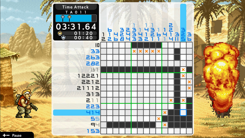Mit dem Auf-Zeit-Modus hat Jupiter der Reihe nach langer Zeit wieder eine Neuerung spendiert. Allerdings ist die Spielvariante nicht direkt neu. In den ursprünglichen Picross-Spielen war es bereits üblich, dass für jedes Rätsel nur begrenzte Zeit verfügbar war, während Fehler Zeitstrafen gebracht haben. Das bringt Jupiter mit dem Auf-Zeit-Modus für dreißig ausgewählte Rätsel des Standard-Picross-Modus zurück. Die Zeitbegrenzung fällt wesentlich härter aus als früher. So stehen je nach Rätsel nur zwei bis sieben Minuten zur Verfügung. Ein knappes Limit, das aufgrund der harten Sekundenstrafe bei Fehlern noch knackiger wird. Je nachdem, wie schnell die Rätsel gelöst werden, winken Bronze-, Silber- oder Gold-Medaille. Das bringt zusätzliche Motivation und Abwechslung in die über fünfhundert Rätsel.