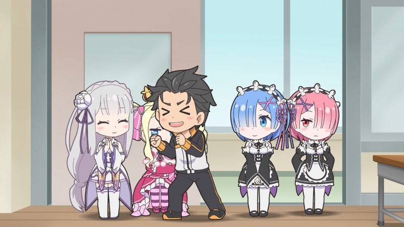 Im Verlauf der zwölf Episoden, die zusammen fast zweieinhalb Stunden Laufzeit haben, passiert einiges. Dabei setzt Isekai Quartet gleichermaßen auf die Eigenheiten der Charaktere inklusive ihres Wissens aus ihrer jeweiligen Welt und die stereotypischen Elemente eines Schulsettings. Natürlich nimmt sich die Comedy-Serie dabei zu keiner Zeit ernst, stellt vieles bewusst überzeichnet dar und sorgt mit einigen vollkommen unsinnigen Situation für reichlich Witz und Lacher. Ob nun die Auswahl des Klassensprechers, die Besetzung der Komitees oder die Planung eines Klassenausflugs, reichlich Chaos ist immer garantiert, was angesichts der Besetzung von Isekai Quartet keine Überraschung ist. Natürlich tragen die Lehrer, zu denen unter anderem Roswaal aus Re:Zero oder Erich von Rerugen aus Saga of Tanya the Evil gehören, viel zum Witz bei.