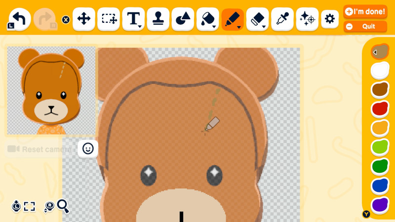 Das ist aber noch nicht alles. Dank der Werkstatt habt ihr die Möglichkeit wirklich alles selbst zu gestalten. Ob ihr nun Kleidung, Nahrungsmittel, Häuserfassaden oder Bodenplatten für die Insel entwerft, eurer Kreativität ist fast keine Grenze gesetzt. Zumal der Editor wirklich mächtig ist und enorm viele Optionen bietet. Umso bedauerlicher ist es, dass es keine Möglichkeit gibt, eure Werke online zu teilen. Hier dürfte die große Freiheit eine Rolle spielen, da Nintendo euch keine Grenzen vorgibt, weshalb auch Schimpfwörter oder für manche unangemessene Bilder möglich sind. Trotzdem wäre gerade für weniger kreative Menschen eine Download-Funktion von Community-Inhalten praktisch.